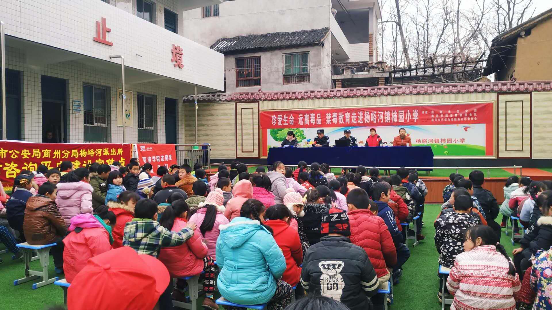 为普及禁毒知识,遏制毒品蔓延,加强校园禁毒宣传力度,提高少年儿童的心理预防能力和禁毒意识,在学校内营造人人参与禁毒的良好氛围,商洛市公安局禁毒支队、商州分局禁毒大队、杨峪河派出所携手商洛学院志愿者服务队和商洛市天健为老志愿者协会开展“珍爱生命远离毒品”主题教育活动。