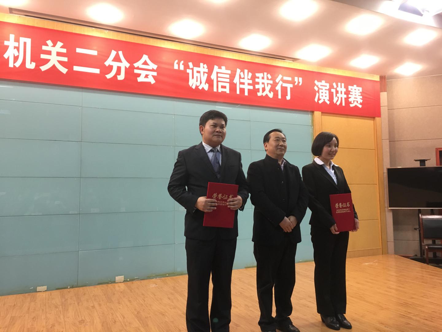 为了深入学习贯彻习近平新时代中国特色社会主义思想,落实《商洛学院关于创建市级文明校园实施方案》,进一步弘扬诚信精神,着力营造诚实守信的舆论环境、校园环境,11月14日下午,商洛学院机关二分会在图书馆一楼报告厅举办了“诚信伴我行”演讲比赛活动。比赛过程中,参赛选手紧紧围绕“诚信”主题,结合自己的工作岗位和生活经历,以生动的语言、感人的事例、充实的内容、真挚的感情,畅谈对诚信的认识,讲述了自己或身边有关诚信方面的人和事,大力倡导爱国守法、明礼诚信、团结友善、敬业奉献的崇高品质,以富有感染力的神态动作和声情并茂的语言诠释了诚实守信的重要性和必要性,赢得了现场观众的阵阵掌声。