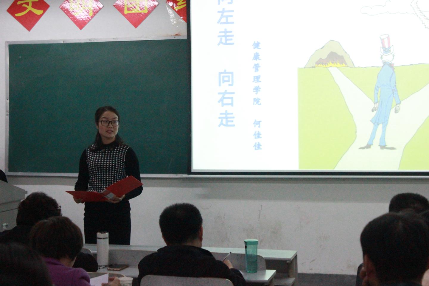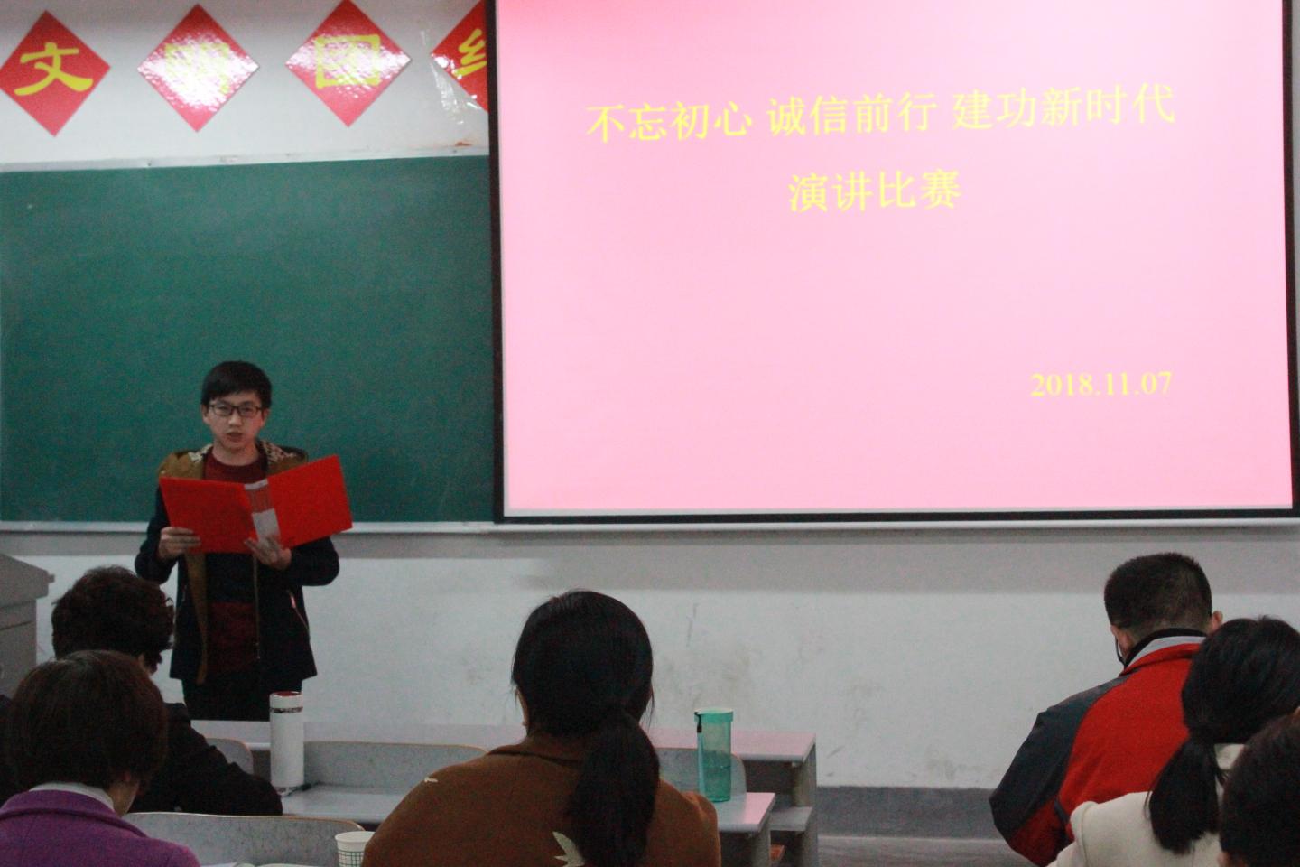为了深入学习贯彻习近平新时代中国特色社会主义思想,落实《商洛学院关于创建市级文明校园实施方案》,结合“弘扬爱国奋斗精神建功立业新时代”活动,营造人人知诚信、人人讲诚信的浓厚氛围,大力倡导爱国守法、明礼诚信、团结友善、敬业奉献的崇高品质,强化教职工诚信意识,提升教职工诚信品质,激发教职工建功立业新时代的积极性和奋斗精神,我院于2018年11月8日晚在303教室举办了健康管理学院“诚信伴我行”主题演讲赛。