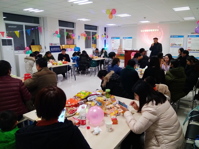 为了喜迎2018年元旦,经济管理学院工会分会在学校工会的殷切关怀和大力支持下,于12月28日晚在新综合大楼10-03活动室隆重举行“庆元旦”迎新茶话会,经济管理学院全体教职工和职能部门兼职教师欢聚一堂,共话经济管理学院的美好未来。院党总支书记、分会主席赵健、副院长王怡分别作新年致辞,祝愿全体教职工身体健康,工作顺利,元旦快乐,万事如意!
