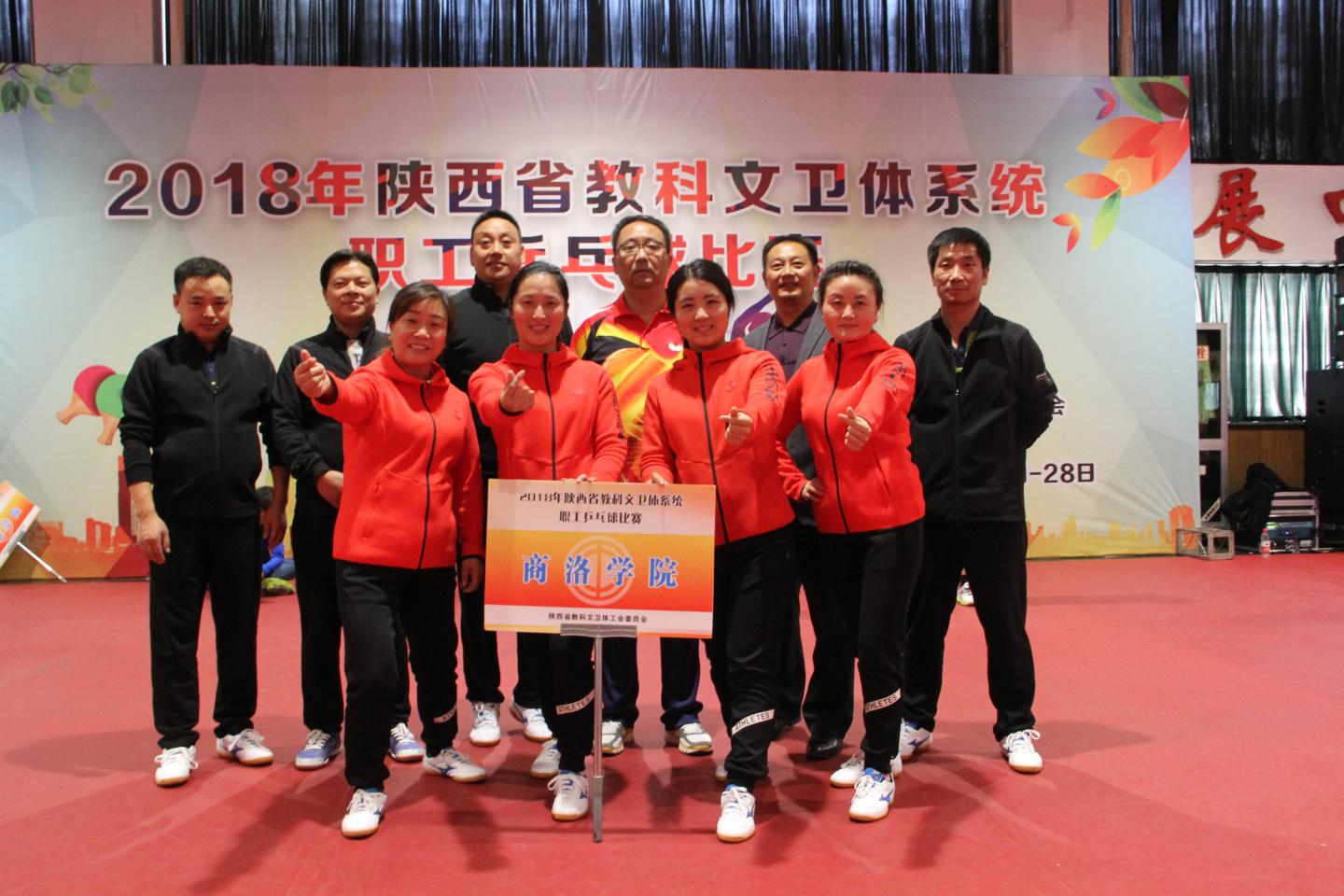 10月27至28日,由陕西省教科文卫体主办、西安体育学院承办的陕西省教科文卫体系统职工乒乓球赛在西安体育学院体育馆举行。64支代表队800余人参加了本次比赛。我校选派9名队员参加比赛,经过两天紧张激烈的角逐,我校代表队荣获“优秀组织奖”。
