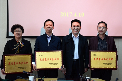 会议表彰了学校2016年先进基层工会组织、优秀工会干部、优秀工会积极分子。彭虎军分别为获奖集体和个人颁奖。经济与管理学院分会等3个单位被评为先进基层工会组织,田小莉等8人被评为优秀工会干部,任晓冬等16人被评为优秀工会积极分子。
