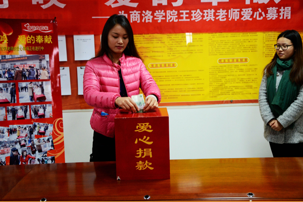 近日,我校师生以“商山洛水作见证,让爱心创造奇迹”为题,向社会公众发出了救助优秀女教师王珍琪的倡议书,通过现场募捐、微信、微博等方式为她筹集捐款,这场爱心传递,也得到了社会各界的热烈回应。